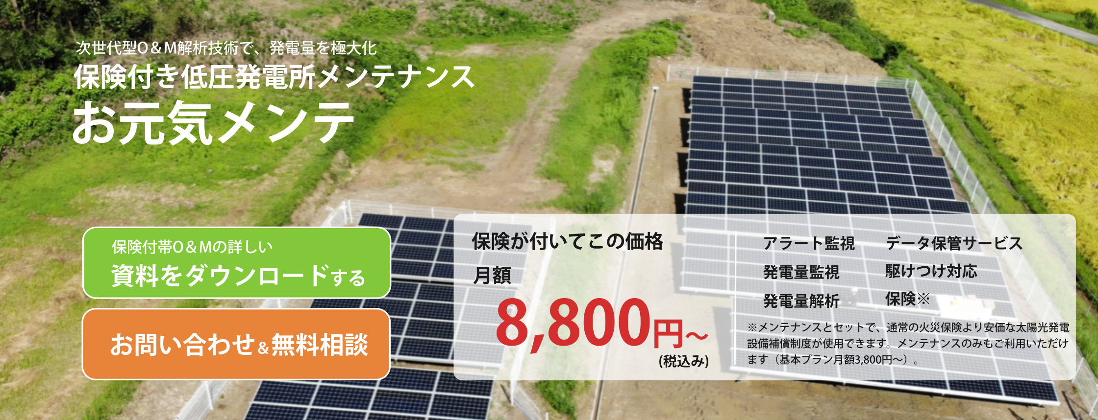 保険付き太陽光メンテナンス(O&M)「お元気メンテ」の特徴Maintenance Feature