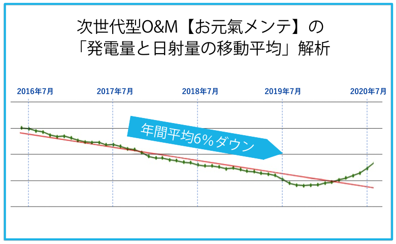 ②発電量のデータは、相対比較だけでなく、気象条件を含め月々の変動要素を捨象する特殊解析して「発電量が低下していないか」、「低下している場合はその原因は何か」を解析することが大切です。